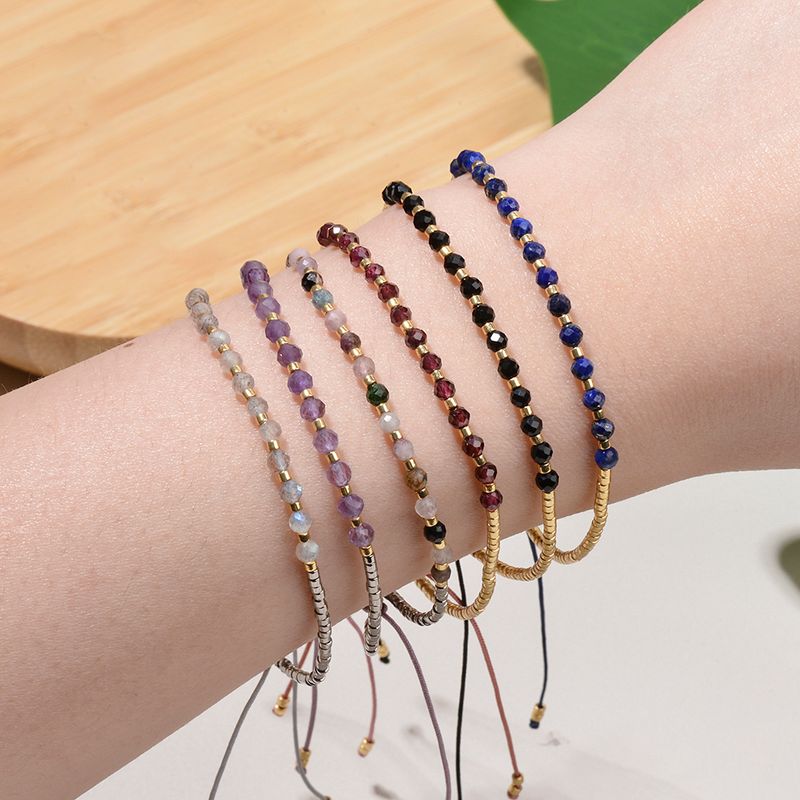 Natural amethyst garnet tourmaline Black spinel Flash stone semi-gemstone bracelet Birthday Healing Stone Lady bracelet gift