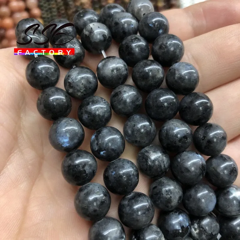 Natural Black Labradorite Stone Beads Round Larvikite Beads For Jewelry Making DIY Bracelet 4 6 8 10 12MM 15" Strand Wholesale