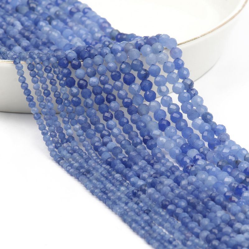 Material: Natural Blue Sandstond 2/3/4mm Faceted Mineral Loose Beads for Jewelry Making DIY Christmas Gift Bracelets 15'' Tiny Stone