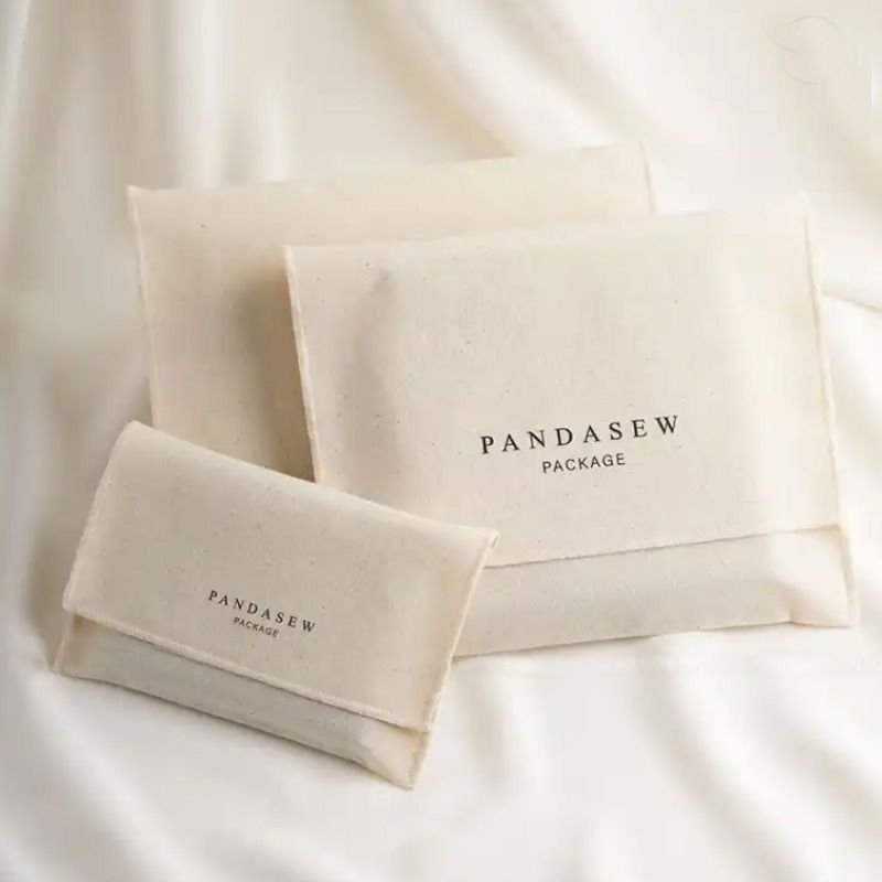 Natural Cotton Envelope Gift Bags 7x7cm 10x8cm 10x10cm 20x15cm pack of 50 Custom Logo Canvas Sack Jewelry Flap Pouches