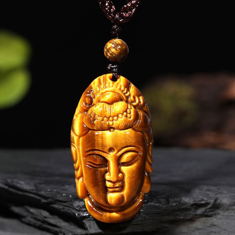 Natural Eye Stone Tiger Head Lucky Bag Pendant Necklace Guanyin Single drop ordinary rope