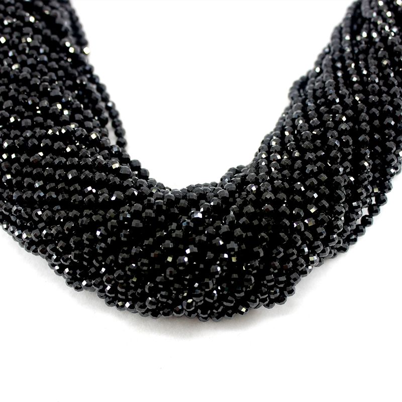 Natural Faceted Black Spinel Bright Quality Natural Loose Round Beads 2/3/4/6MM For Jewelry Making DIY Bracelet Necklace Length 38CM