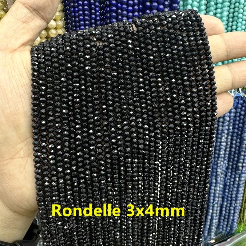 Natural Faceted Black Spinel Bright Quality Natural Loose Round Beads 2/3/4/6MM For Jewelry Making DIY Bracelet Necklace Length 38CM