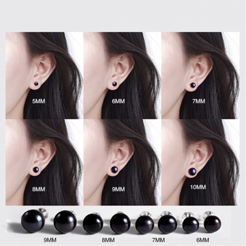 Dainashi AAAA High Luster White Black 6-11mm 100% Cultured Freshwater Pearl Stud Earrings for Women,Sterling Silver Women Earrings