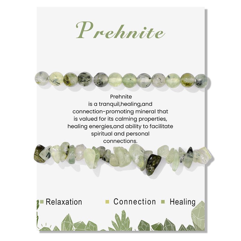 Natural Green Prehnite Bracelet With Card Tendy Natural Gravel Chip Stone Amazonite Aventurine Bangle Handmade Jewelry Gift
