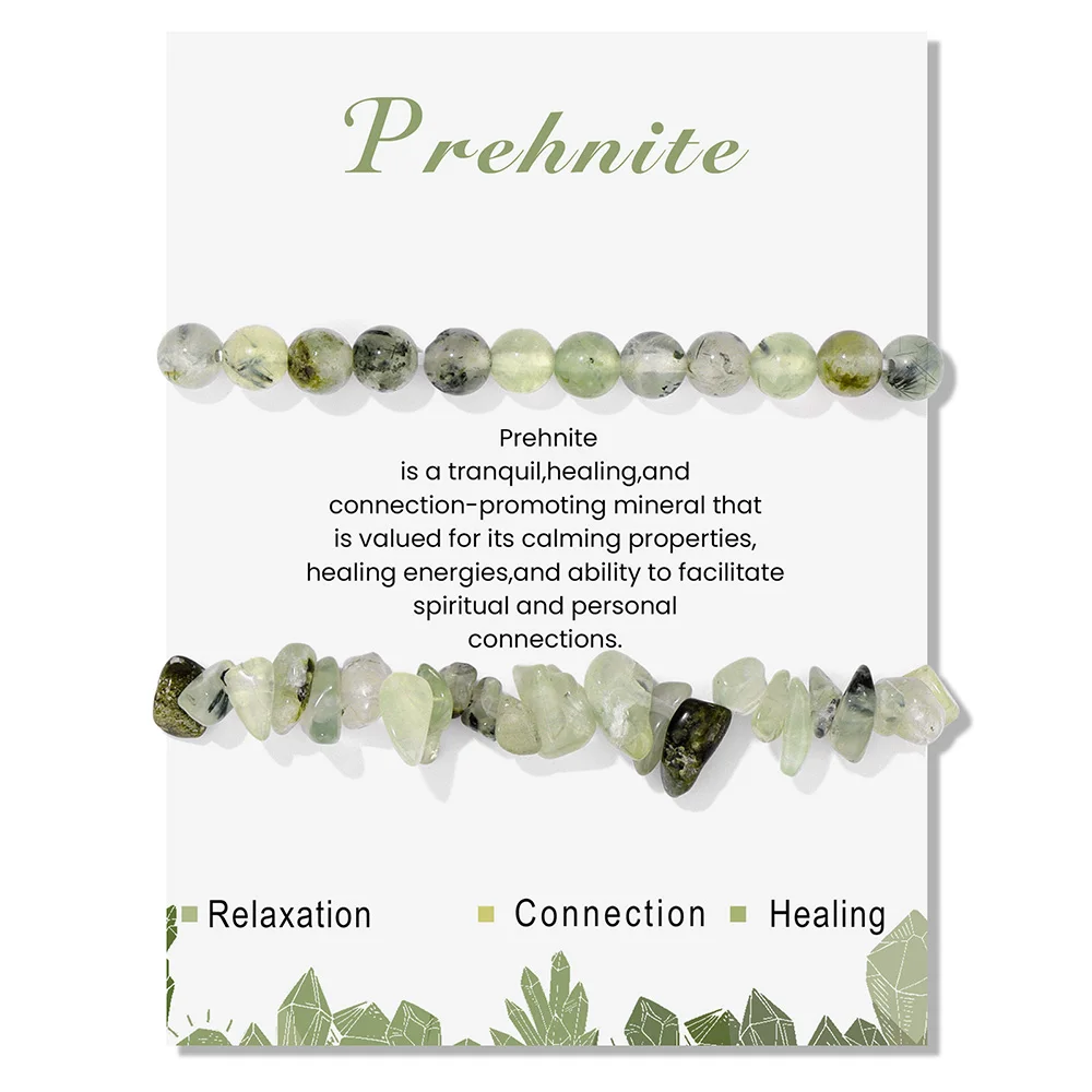 Natural Green Prehnite Bracelet With Card Tendy Natural Gravel Chip Stone Amazonite Aventurine Bangle Handmade Jewelry Gift