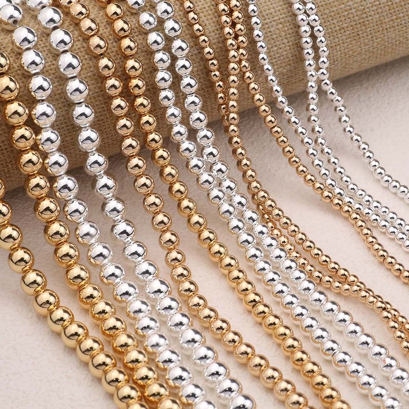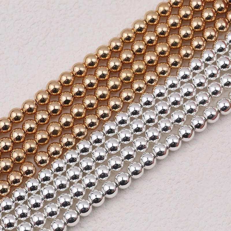 Natural Hematite Stone KC Gold/Silver Color Plated Beads Round Loose Beads For Jewelry Making DIY Bracelets Necklace Accessories