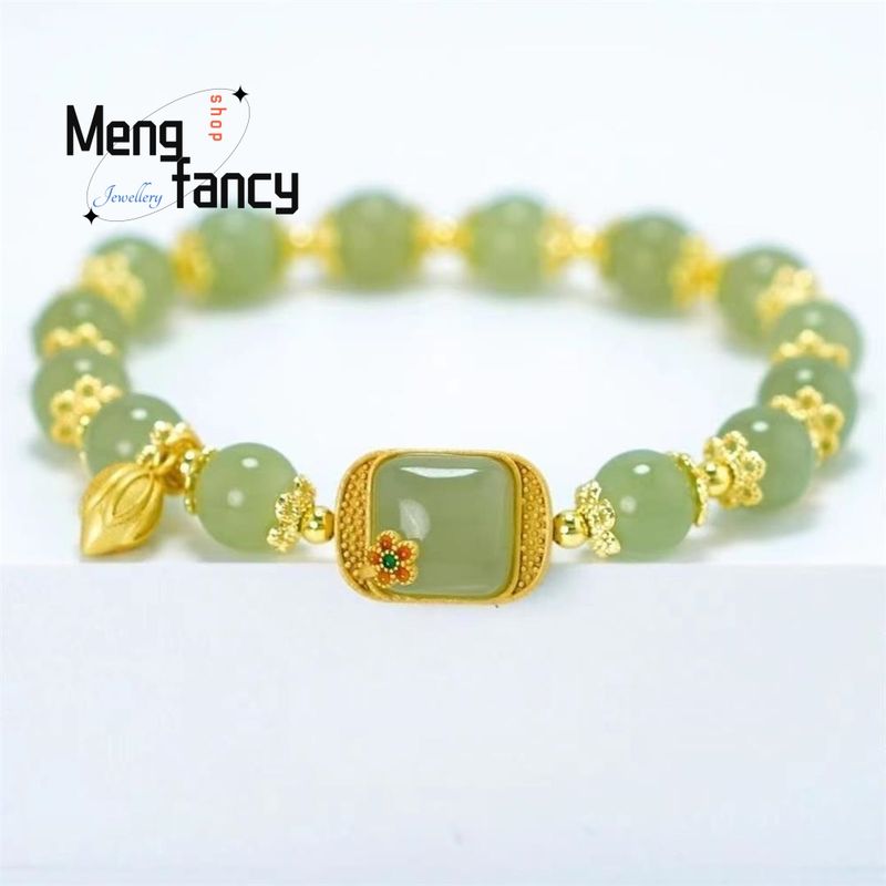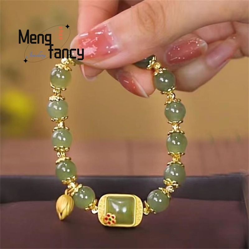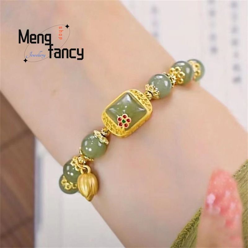 Natural Hetian Jade Bracelet Square Sugar Lotus Bracelet Exquisite Elegant Retro Chinese Style Sexy Young Girls Fashion Jewelry