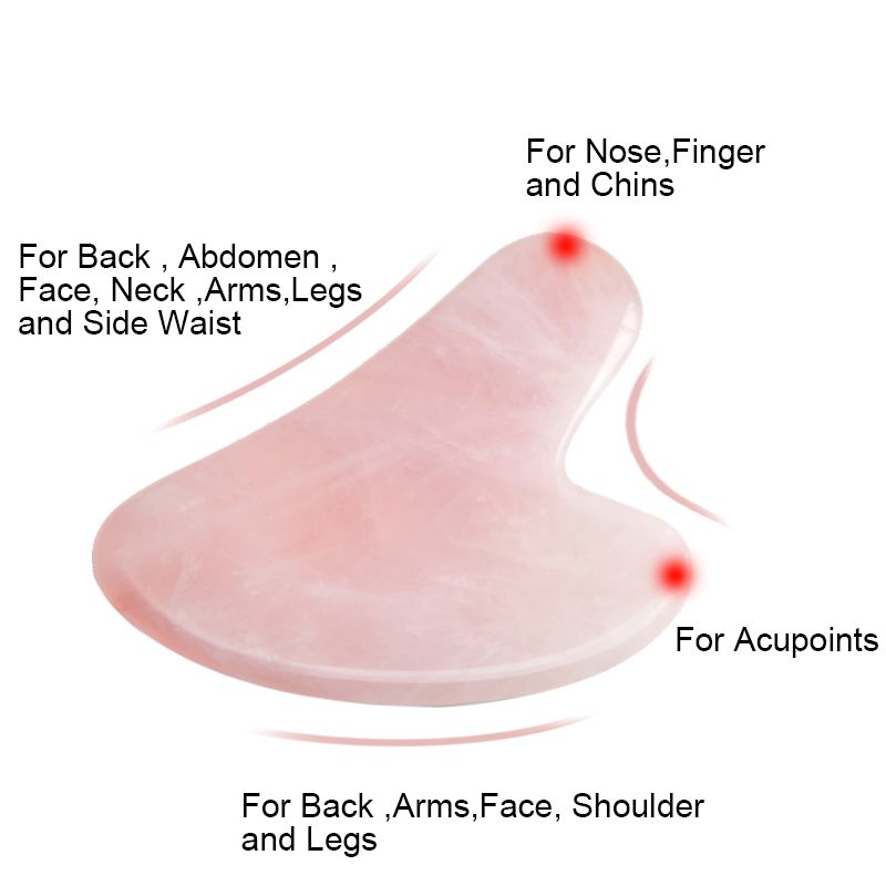 About the product: ​Enjoy a Natural and healthy massage. The Jade Gua Sha tables are made of 100% natural jade stone. Anti-aging, anti-wrinkle line, reduces darkness under the eyes, improves skin and health without chemicals or irritants. ​ ​Rose Quartz Gua Sha: It is a very good jade gua sha scraping tool, ideal to use on your body and very useful to relieve pressure, always with a relaxing and elegant environment ​ Anti-aging benefits of rose quartz guasha: ​1. Relieves facial tension ​2. Improves skin elasticity: tightens and tones the skin ​3. Relieves the appearance of fine lines and wrinkles ​4. Reduces puffiness, eye bags and dark circles around the eyes ​5. Helps to penetrate the skin beauty products such as face creams and serums for better absorption ​6. Promotes blood circulation to the face for a healthy natural glow ​ How to use: ​1. Wash your face with normal cleansers. ​2. Apply any night cream to your face and neck. ​3. Use upward strokes to move the guasha plate gently over the forehead, cheeks, around the lip and neck. Close your eyes and roll gently over your lids if you have puffy eyes or bags under your eyes. ​4. Use the guasha on your face and neck for 5 to 10 minutes. ​5. Use the guasha three times a week to reduce lines and wrinkles. ​6. Clean your guasha according to the instructions. ​ Important tips: ​1. Each one is not the same in color, jade pattern, thickness, it is normal. Since this item is carved processed by natural stone. It may not be 100% perfect. ​2. As you know, the Gua Sha board is fragile, easy to damage in transit, although we pack it very carefully. If you receive the broken roller massager, please contact us to get a new one.