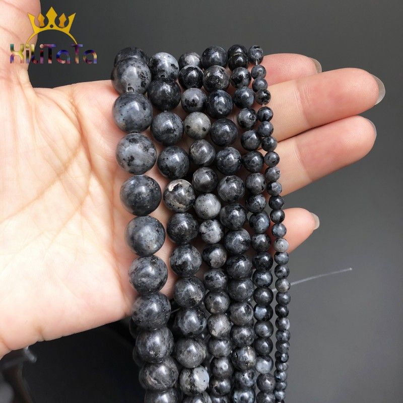 Items Name:Natural Labradorite Larvikite Stone Beads Black Round Loose Beads For Jewelry DIY Making Bracelet Accessories 15" 4/6/8/10/12mm