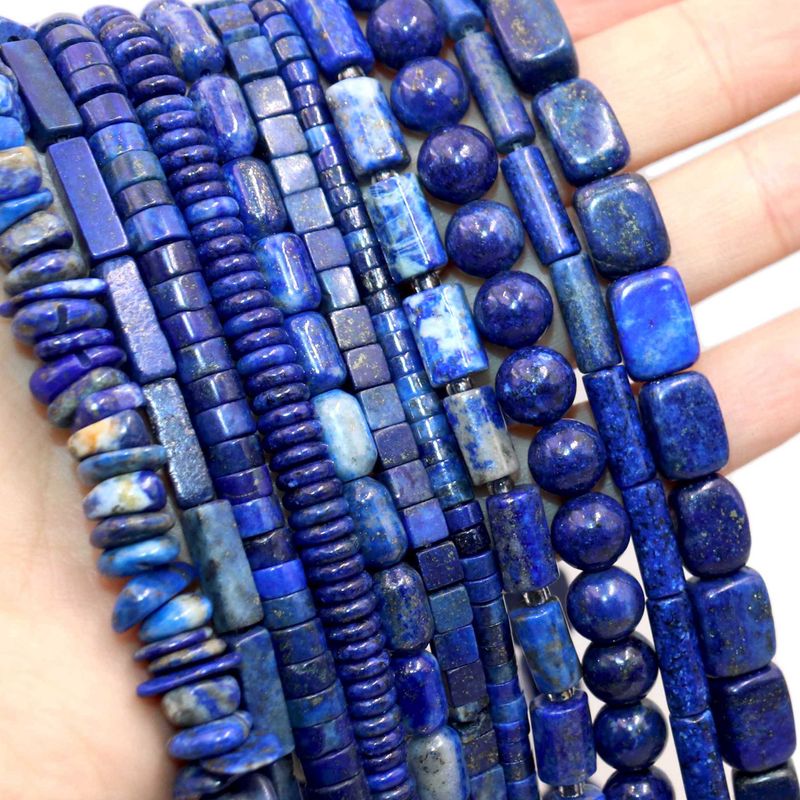 Natural Lapis Lazuli Round Tube Faceted Loose Spacer Stone Beads For Jewelry Making DIY Handmade Bracelets Necklace Accessories