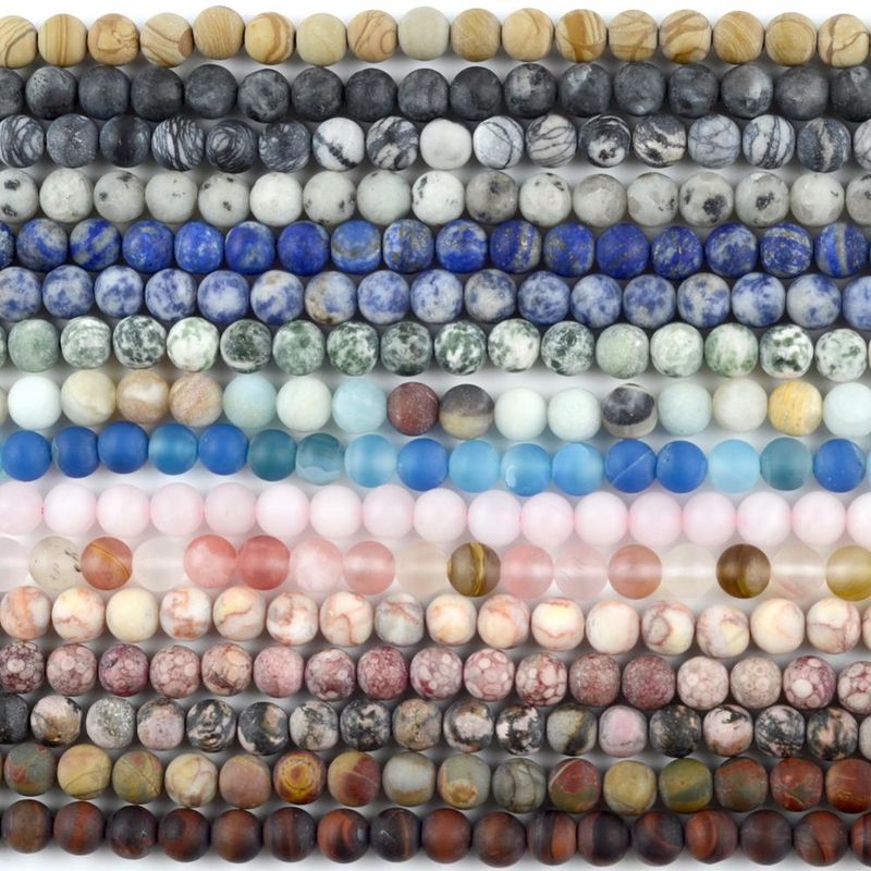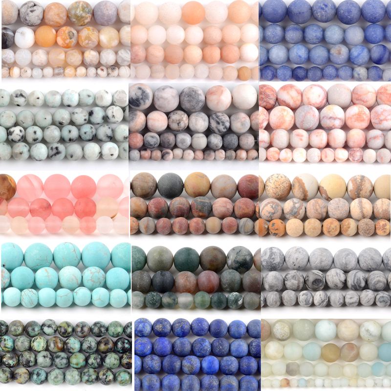Natural Matte Jaspers Frosted Amazonite Agates Jades Quartz Turquoises Stone Round Spacer Bead For Jewelry Making Bracelet