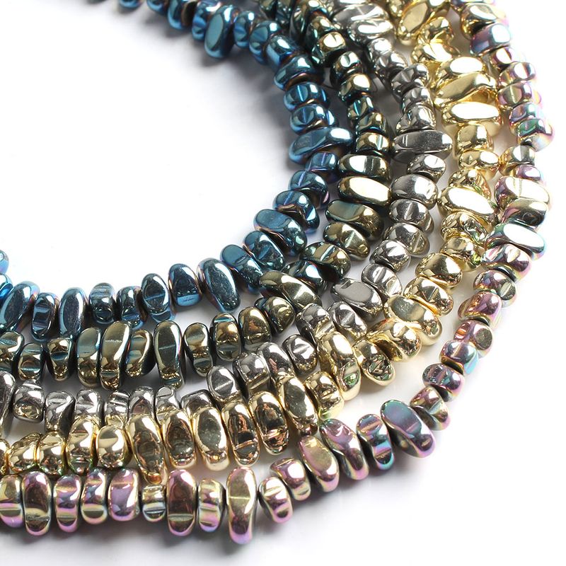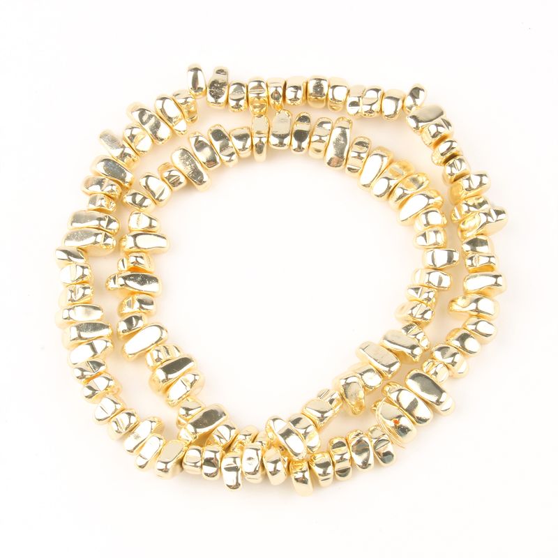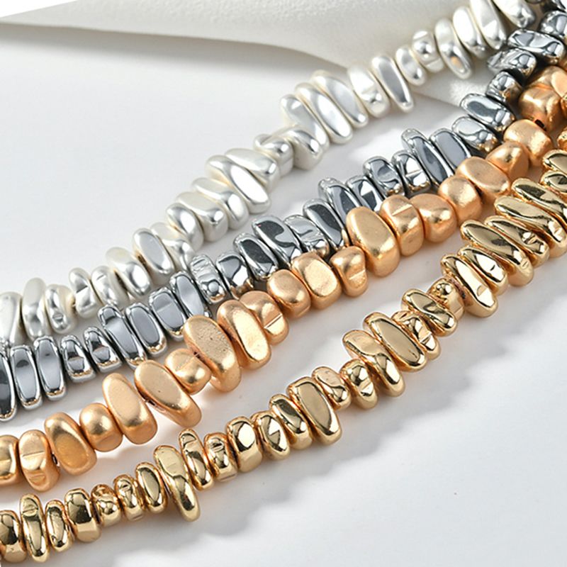 Natural Matte KC Gold Plated Hematite Stone Irregular Gravel Loose Spacer Beads for Jewelry Making DIY Beaded Bracelet 15''