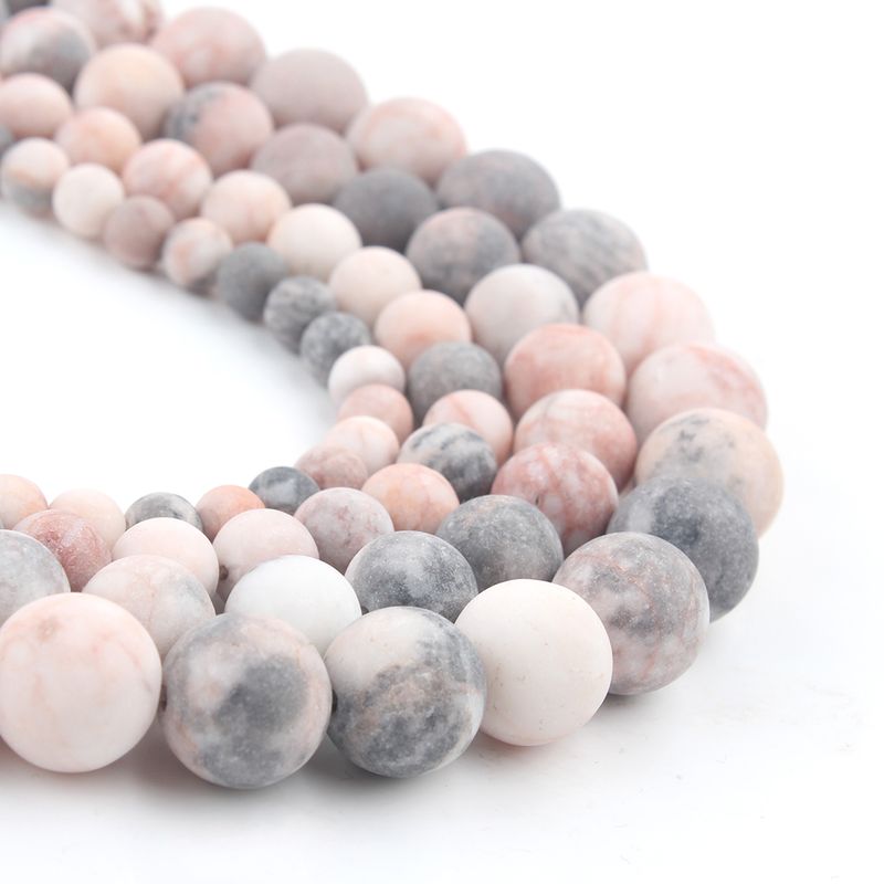 4-12mm Natural Stone Beads Matte Dull Polish Pink Zebra Jaspers Spacer Beads for Jewelry Making DIY Bracelet Necklace Perles15''
