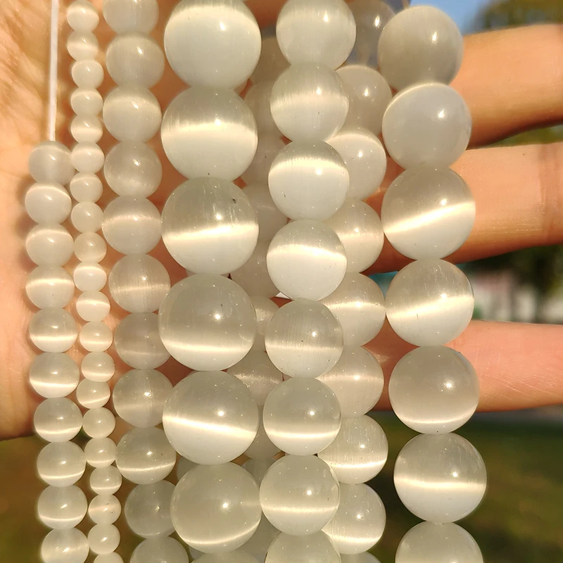 Iteam Name:White Colors Cat's Eye Opal Beads Natural Stone Glass Loose Beads for Jewelry Making DIY Bracelets Findings 4/6/8/10/12mm 15''