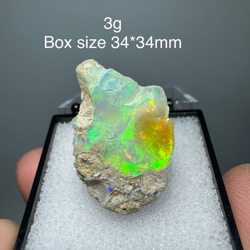 Natural Rare Colorful Ethiopia Opal (No Need Water) Gem Mineral Specimen Box Size:34X34mm (Need lighting) Small Cracks