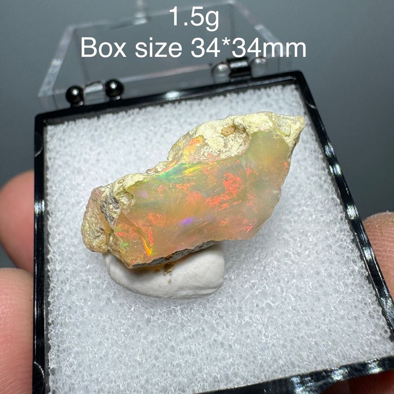 Natural Rare Colorful Ethiopia Opal (No Need Water) Gem Mineral Specimen Box Size:34X34mm (Need lighting) Small Cracks