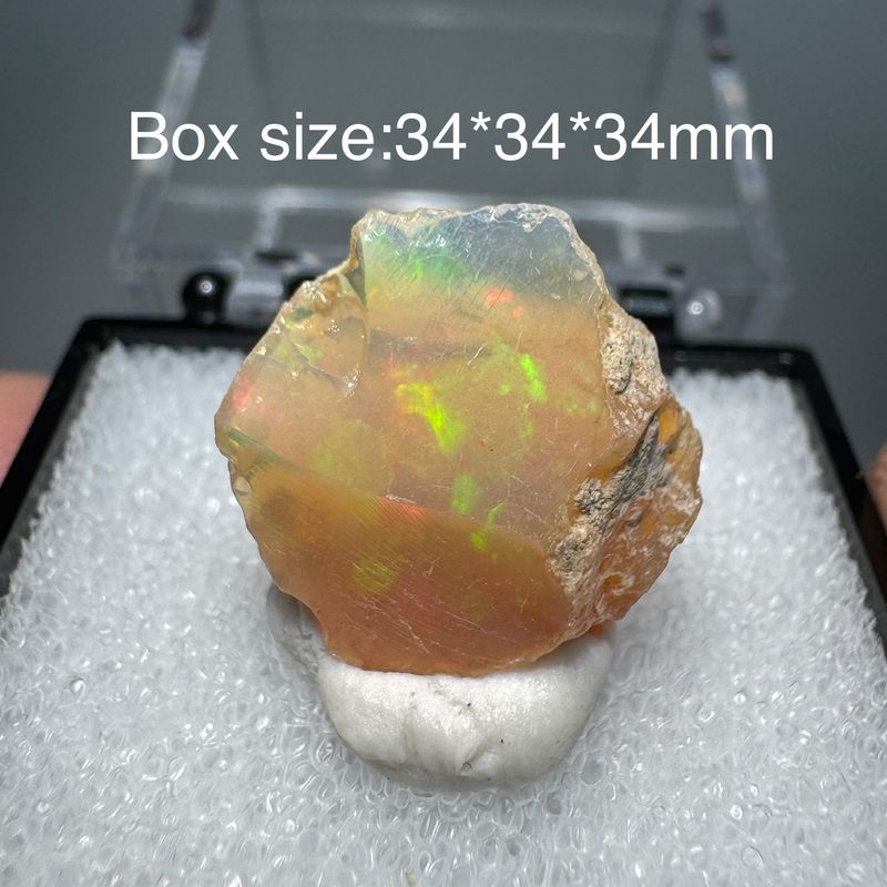 Natural Rare Colorful Ethiopia Opal (No Need Water) Gem Mineral Specimen Box Size:34X34mm (Need lighting) Small Cracks