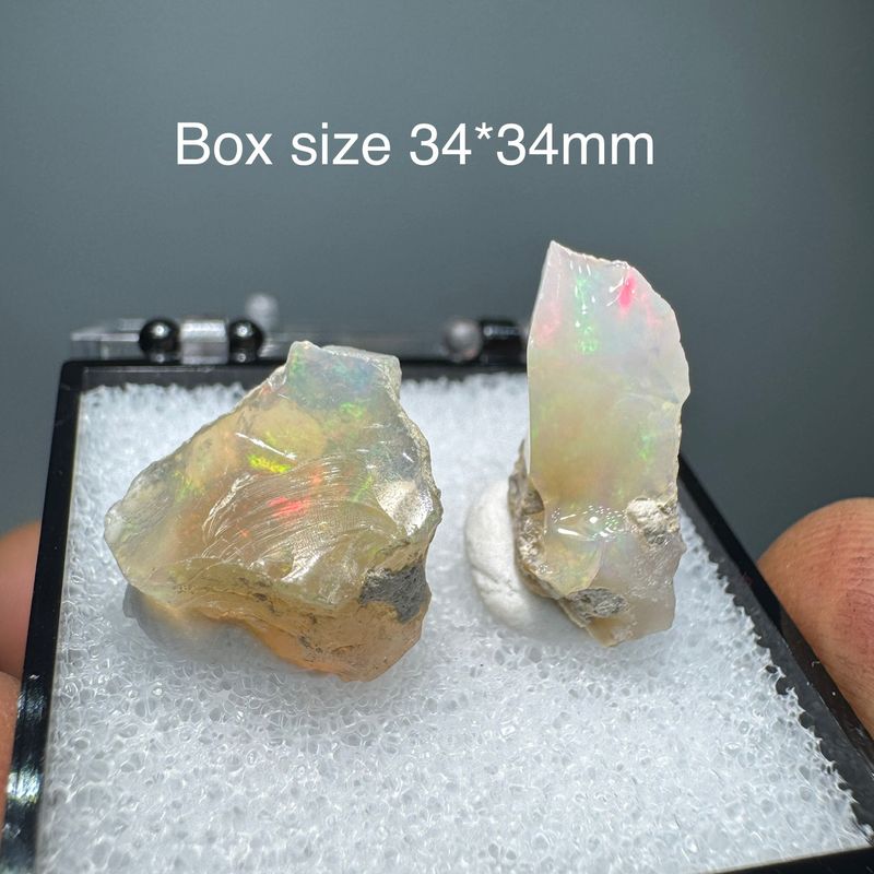 Natural Rare Colorful Ethiopia Opal (No Need Water) Gem Mineral Specimen Box Size:34X34mm (Need lighting) Small Cracks