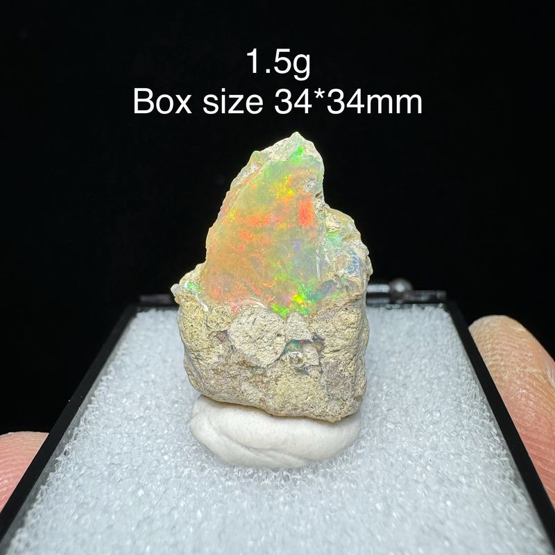 Natural Rare Colorful Ethiopia Opal (No Need Water) Gem Mineral Specimen Box Size:34X34mm (Need lighting) Small Cracks
