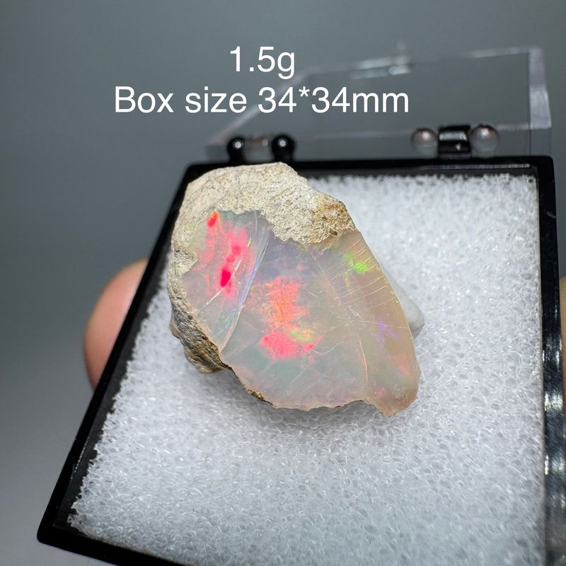 Natural Rare Colorful Ethiopia Opal (No Need Water) Gem Mineral Specimen Box Size:34X34mm (Need lighting) Small Cracks