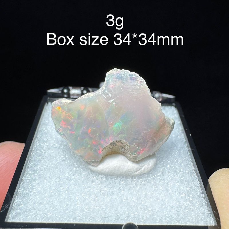 Natural Rare Colorful Ethiopia Opal (No Need Water) Gem Mineral Specimen Box Size:34X34mm (Need lighting) Small Cracks