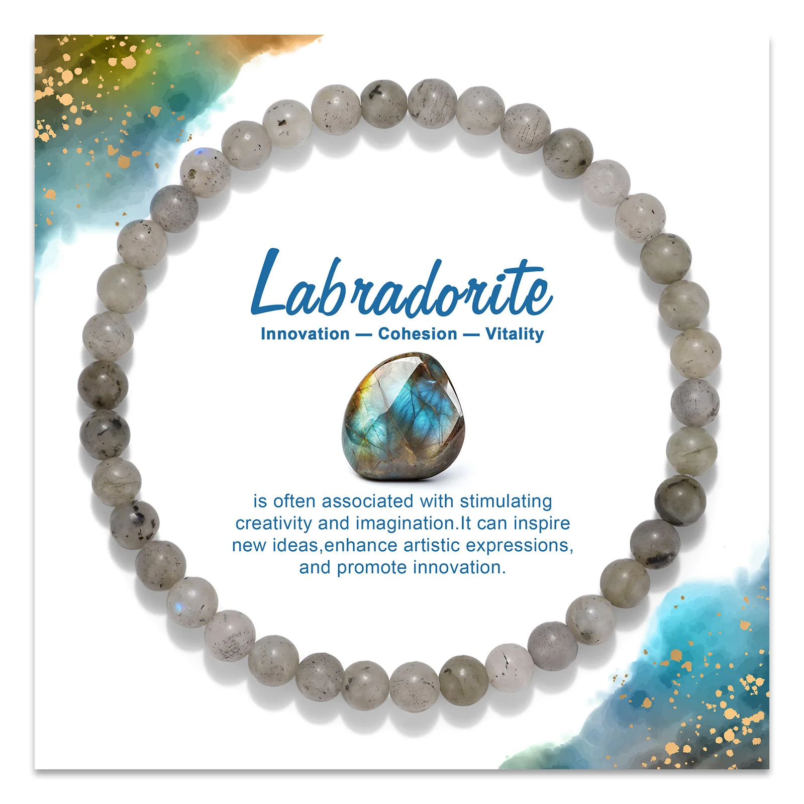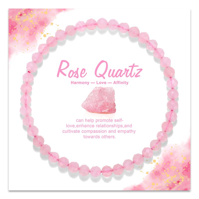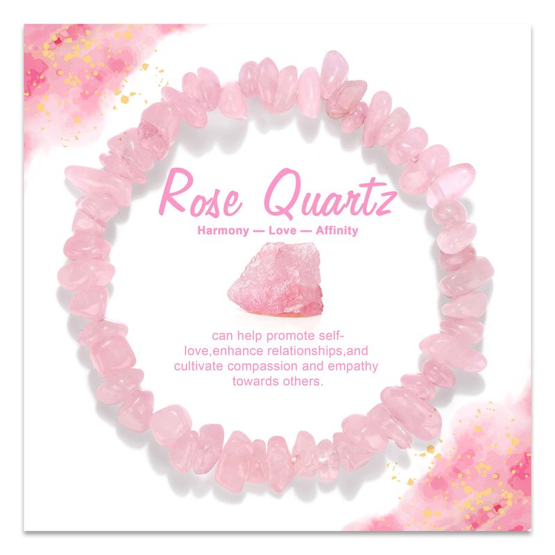 Natural Rose Quartz Beaded Bracelet With Card Healing Stone Crystal Stretch Bracelet For Women Jewelry Reiki Bangles Handmade