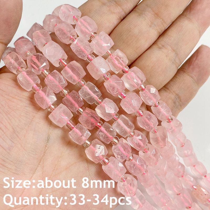Natural Rose Quartz Beads Faceted Square Heart Shape Tube Bead Pink Crystal Quartz Loose Beads For Jewelry Making Necklace DIY