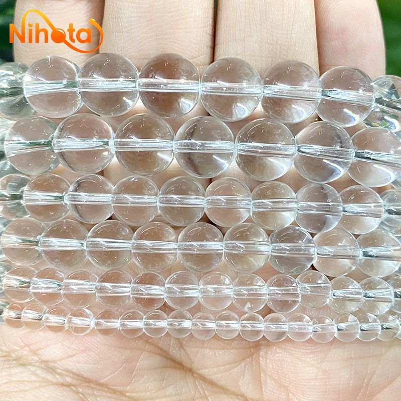 Natural Smooth White Clear Quartz Crystal Round Loose Beads DIY Bracelet Earrings 4/6/8/10/12mm for Jewelry Making 15'' Strand