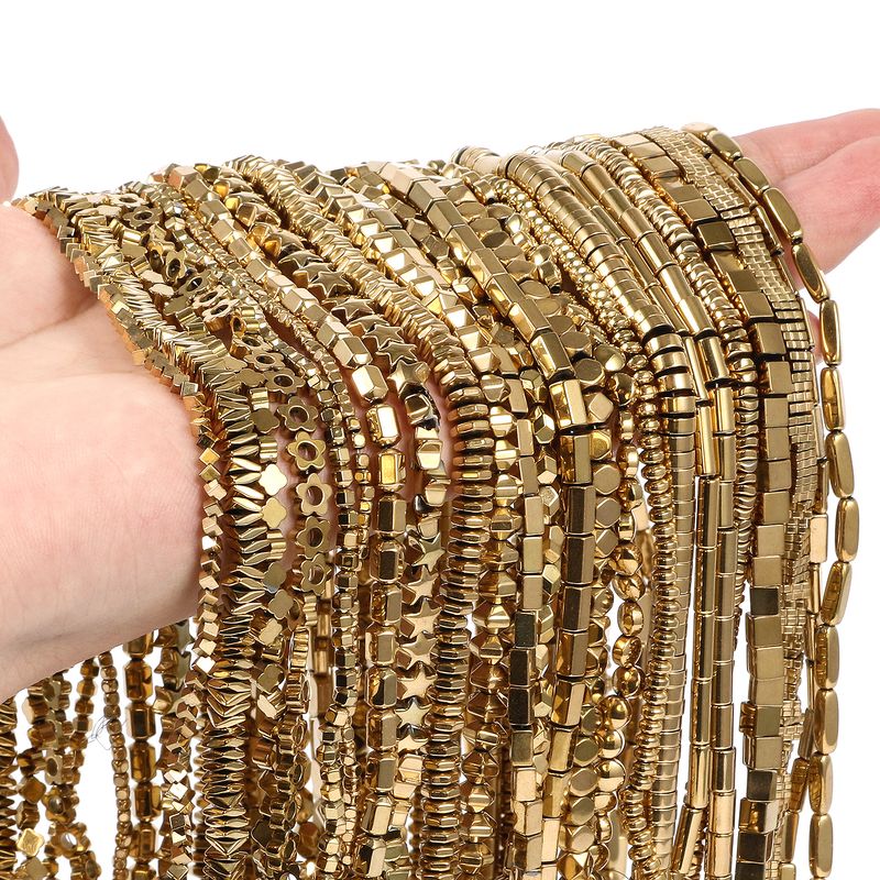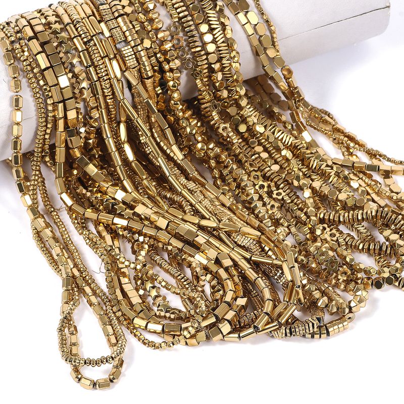 Items Name:Natural Stone AAA+ Hematite Gold-Plated Color Retention Round Spacer Loose Beads for Jewelry Making DIY Bracelet Necklace 15''