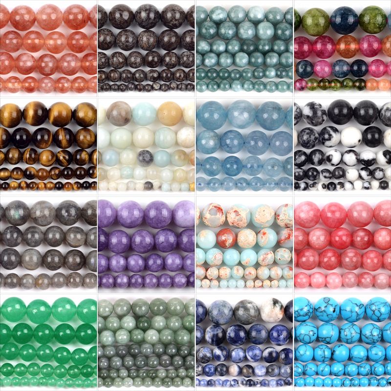 Natural Stone Beads 4/6/8/10mm Lava Amazonite Amethyst Jade Round Charms Loose Beads for Jewelry Making DIY Bracelet Accessories