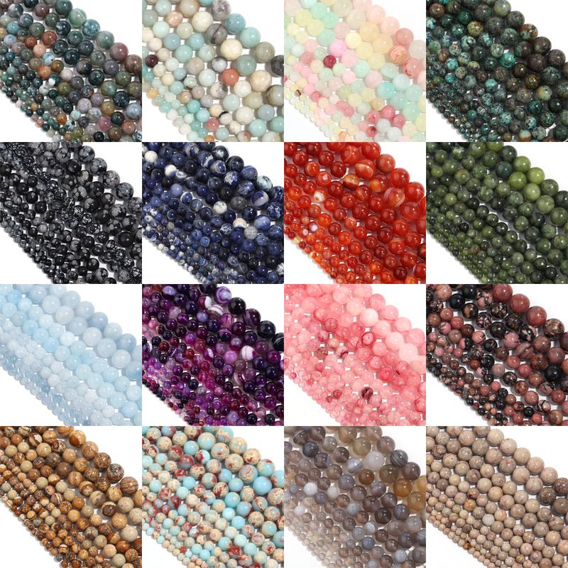 Natural Stone Beads Agate Amethyst Jade Amazonite Tiger Eye Loose Round Beads For DIY Bracelet Necklace Gift Making4/6/8/10/12mm