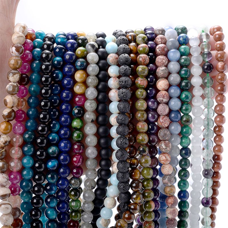 Natural Stone Beads Aquamarines Lava Opal Quartzs Tiger Eye Moonstone Round Beads for Jewelry Making DIY Bracelet Accessories
