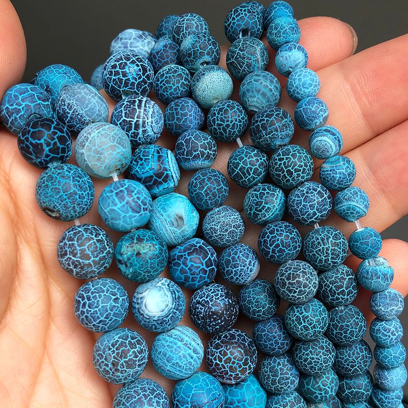 Items Name:Natural Stone Beads Frost Dark Blue Cracked Dream Fire Dragon Veins Agates Beads For Jewelry Making DIY Bracelet 15‘’ 6/8/10mm