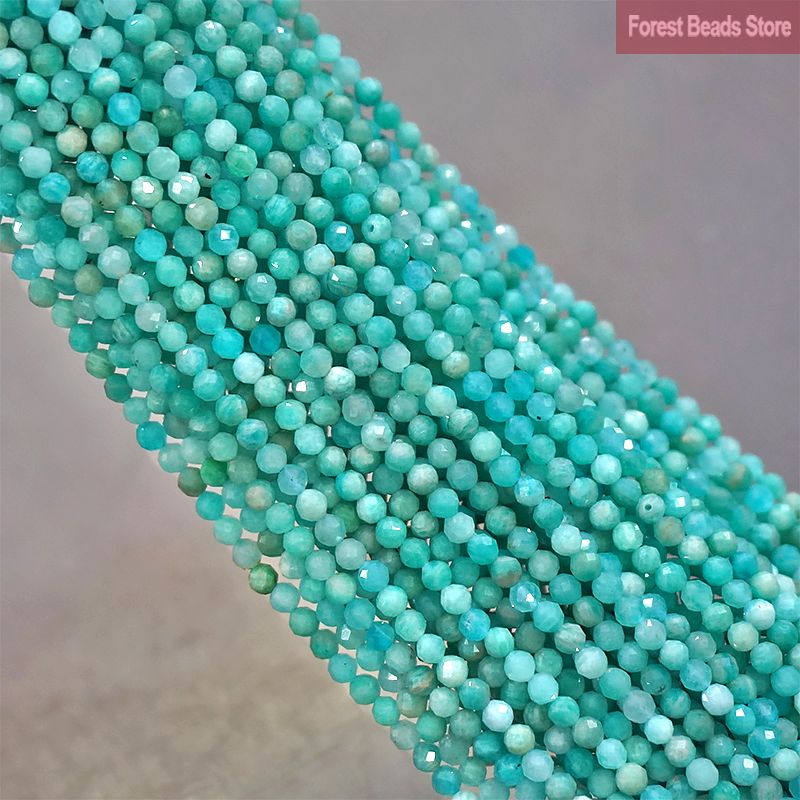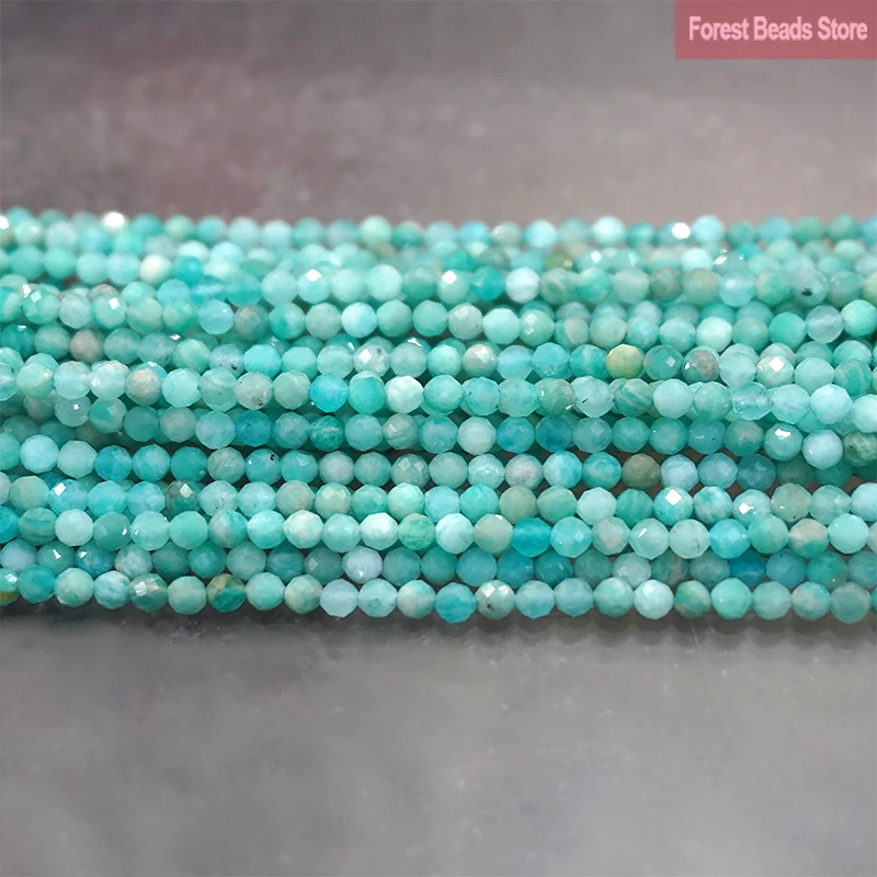 Natural Stone Blue Amazonite Faceted Round Loose Spacer Beads DIY Charms Bracelet Necklace for Jewelry Making 15'' Inch 2mm/3mm