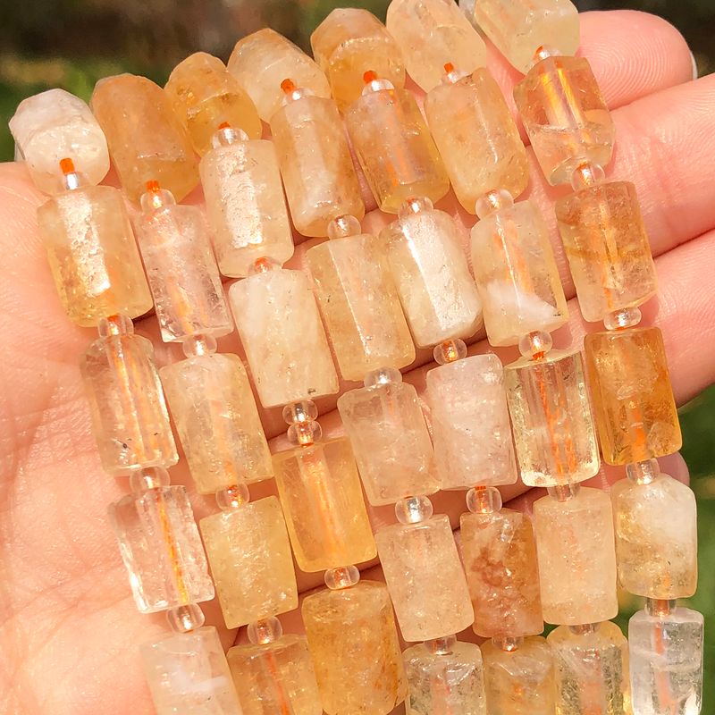 Items Name:Natural Stone Faceted Yellow Citrines Cylinder Loose Spacer Beads for Jewelry DIY Making Charms Bracelet Earrings Accessories