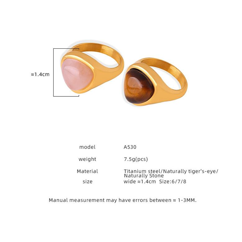 Color: A530-natural pink crystal steel ring, A530-natural pink crystal Golden Circle, A530-natural Tigereye steel ring, A530-natural Tigereye Golden Circle