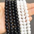 Natural Stone White Black Dull Polish Matte Agates Onyx Smooth Round Beads For Jewelry Making DIY Bracelet 15'' 4 6 8 10 12mm