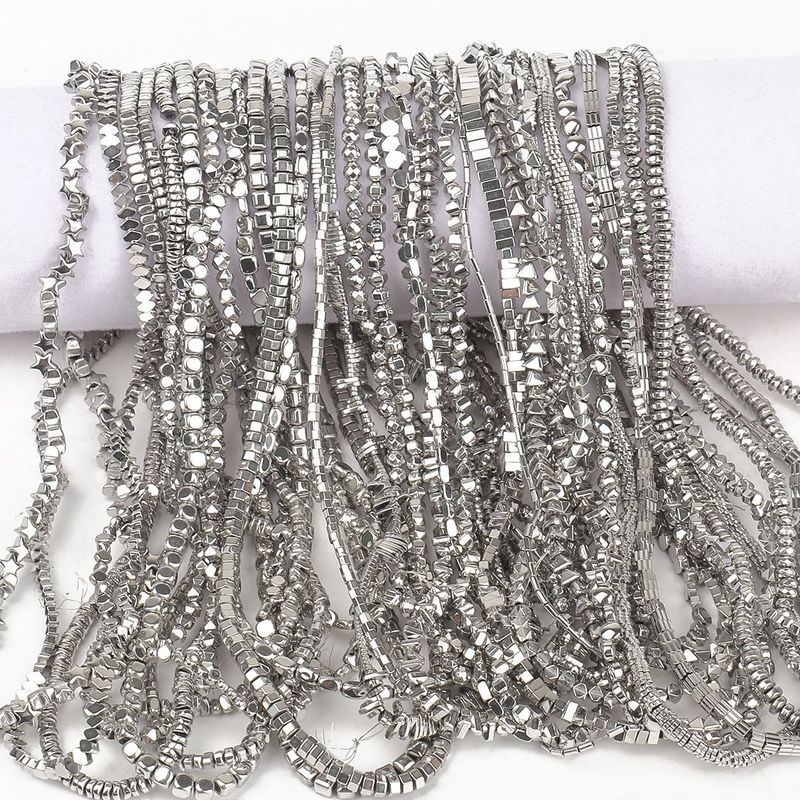 Natural Stone White Gold Plated Multiple Shapes Hematite Beads Spacer Loose Beads For Jewelry Making DIY Charm Bracelet Necklace