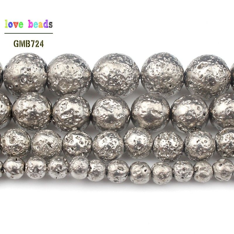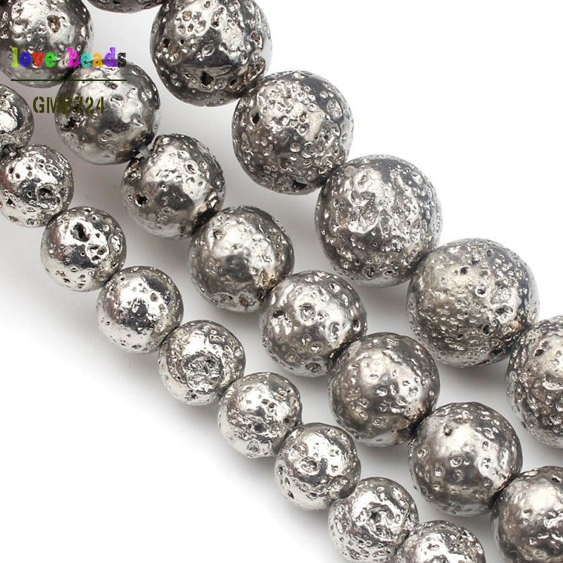 Iteam Name: Natural Stone White Lava Hematite Round Loose Beads 4mm 6mm 8mm 10mm DIY Necklace Bracelet Jewelry Making Accessories