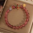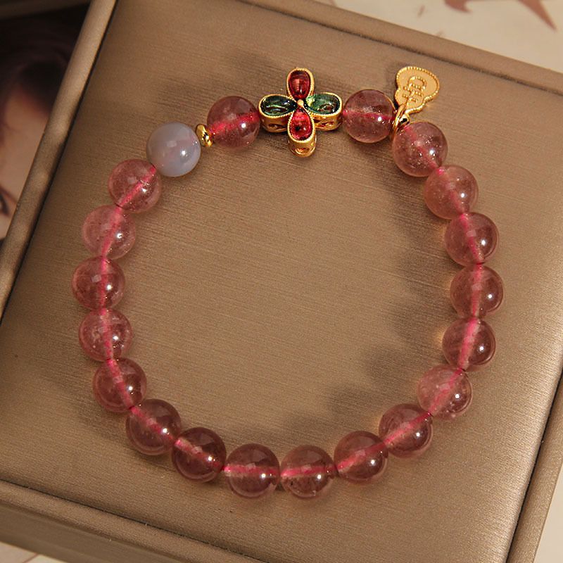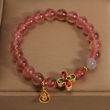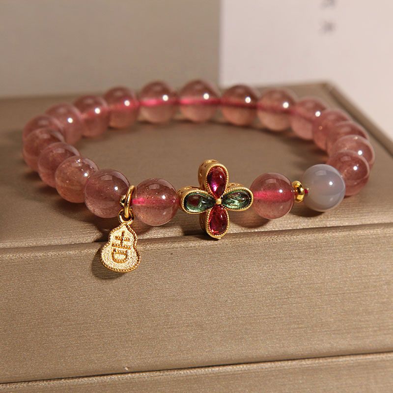 Color: Strawberry quartz four-leaf clover auspicious calabash pendent