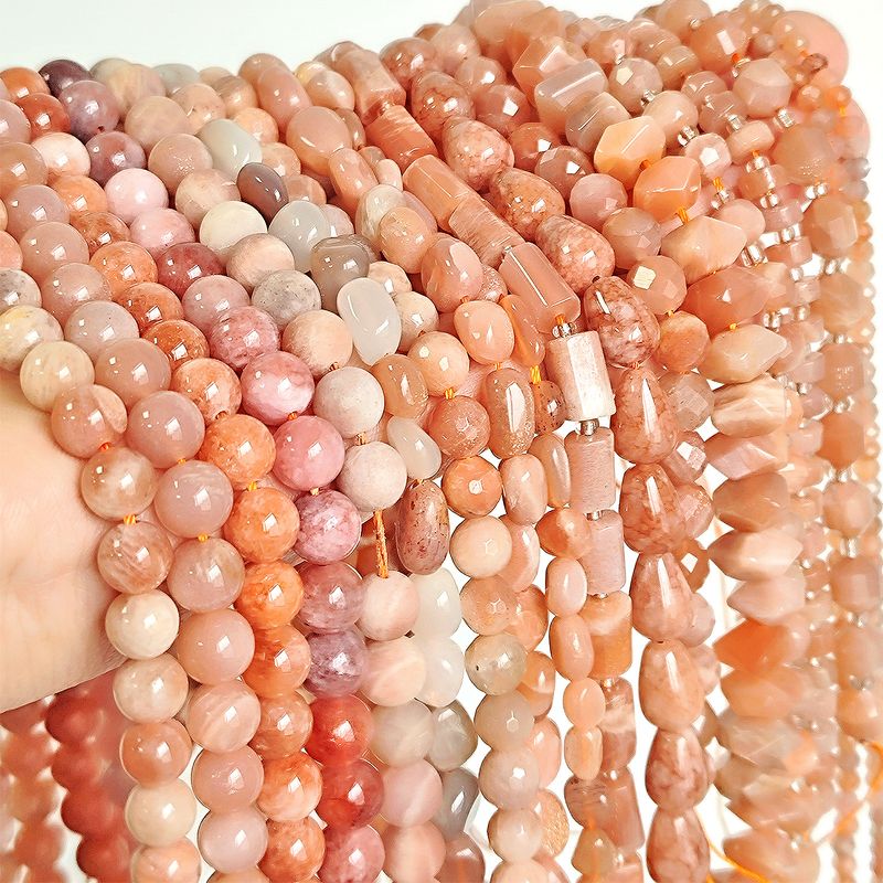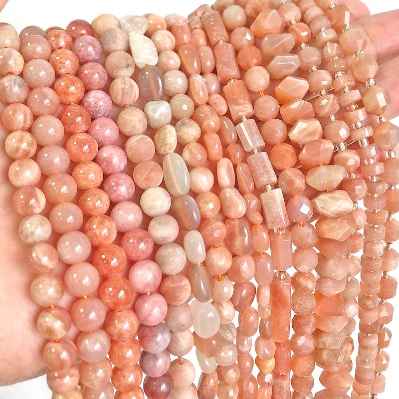 Material: Natural Sunstone Beads Nude Color Irregular Faceted Round Loose Spacer Sun Beads for Jewelry Making DIY Bracelet Necklace
