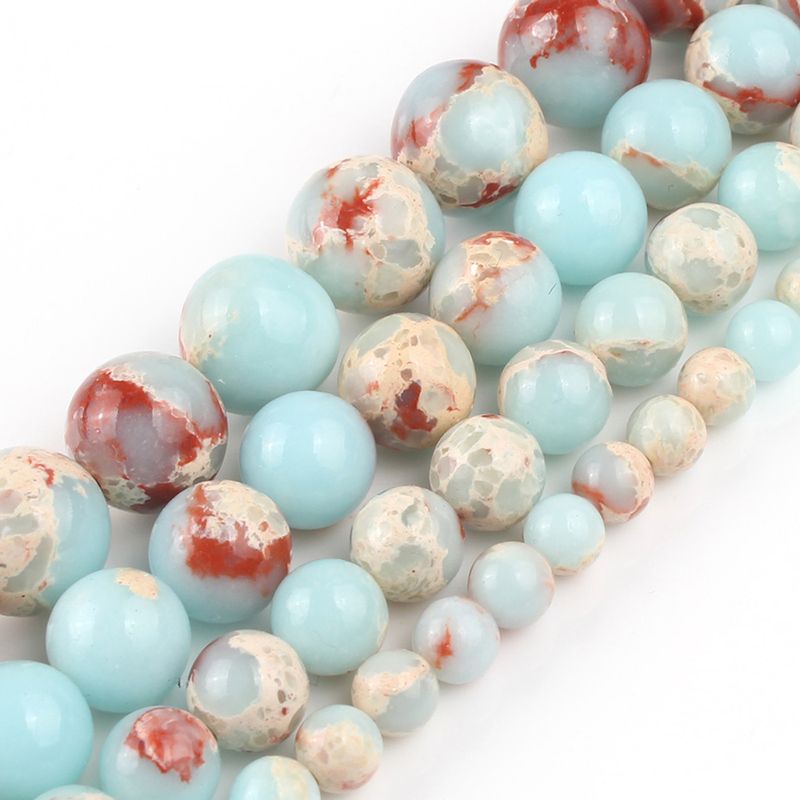 Name: Natural Turquoises Howlite Stone Sediment Jaspers Round Loose DIY Beads for Jewelry Making Christmas Gift Bracelets 15'' 4-12mm
