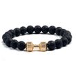 Natural Volcanic Stone Bracelet Men Matte Black Lave White Beads Charm Dumbbell Strand Bracelets Women Barbell Fitness Jewelry