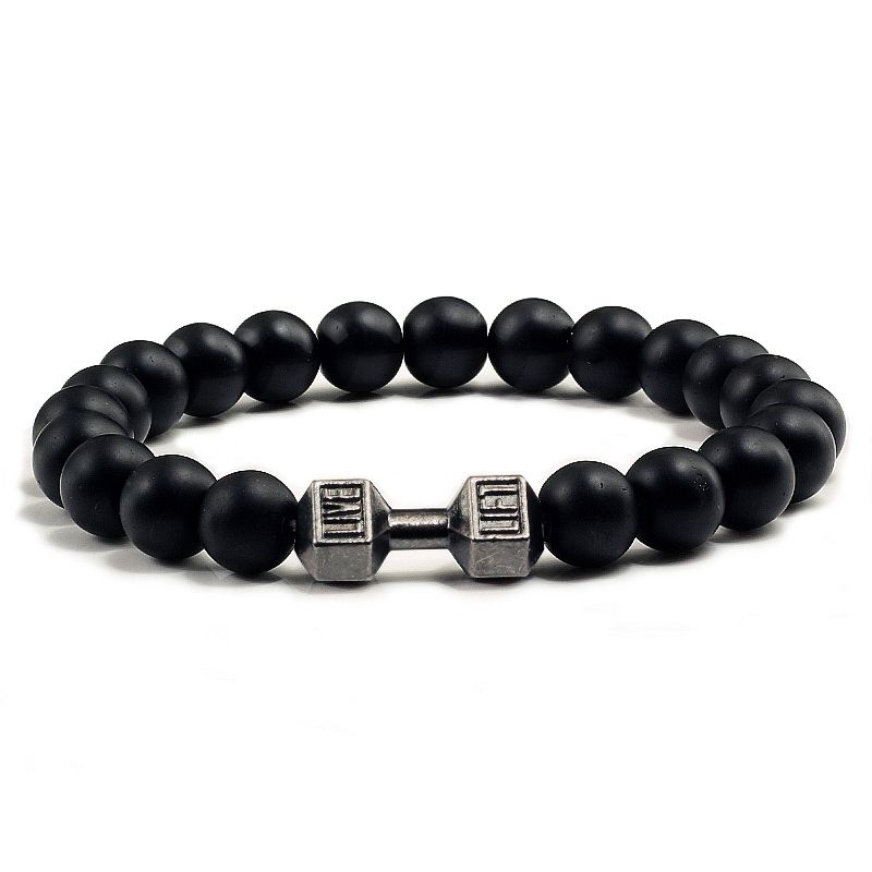 Natural Volcanic Stone Bracelet Men Matte Black Lave White Beads Charm Dumbbell Strand Bracelets Women Barbell Fitness Jewelry