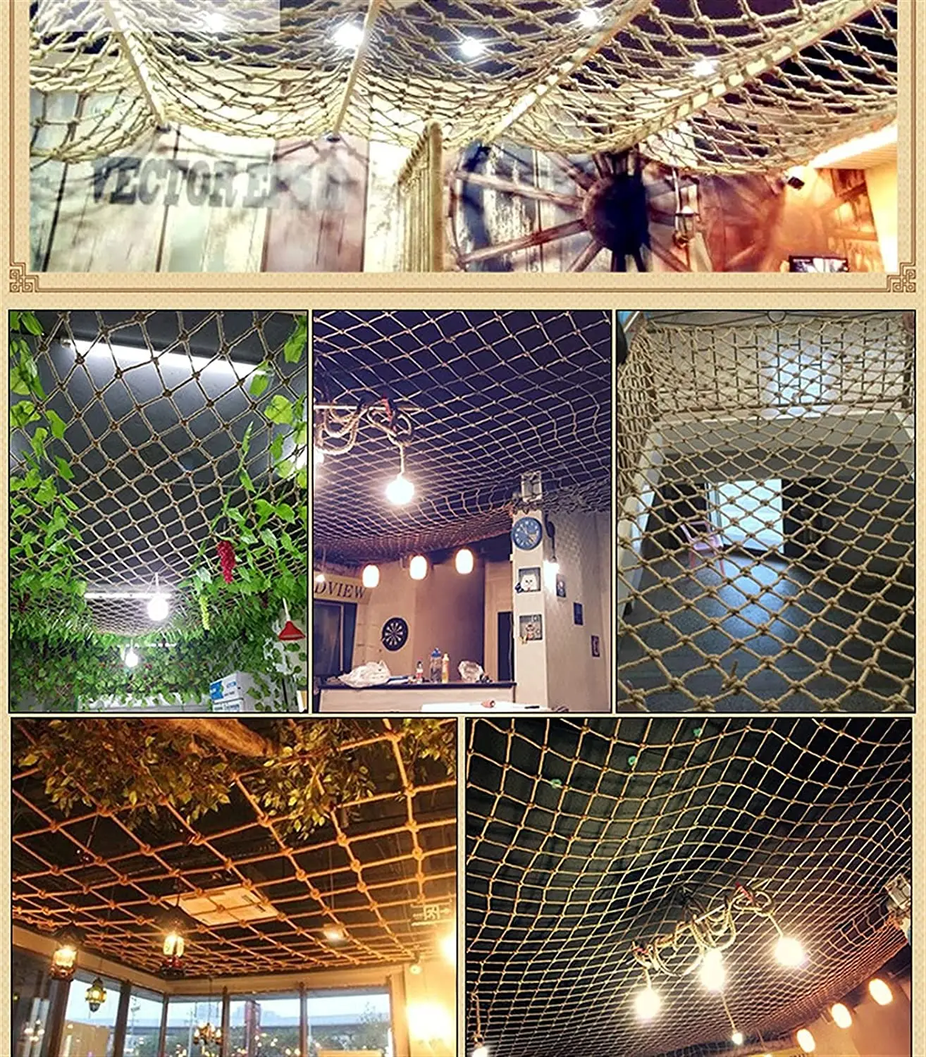Nature Hemp rope climbing net, Fine hand-made weaving, strengthened, the force is even, the pulling force is strong, the sunscreen professional knotting, multi-strand weaving, make the rope more durable, have strong impact resistance
