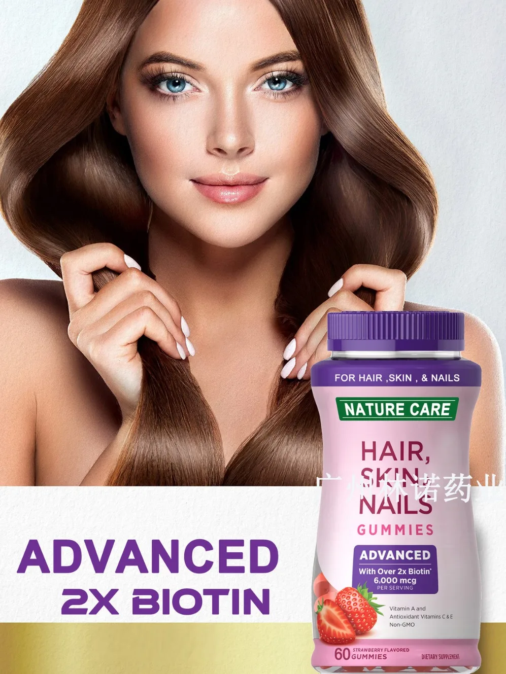 NatureCare Gummies for Hair, Skin & Nails – 60 Soft Chews, Natural Dietary Supplement