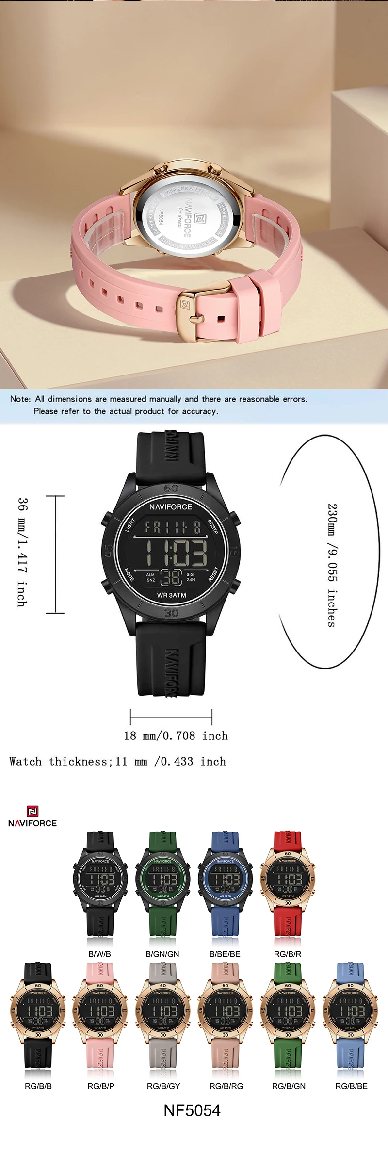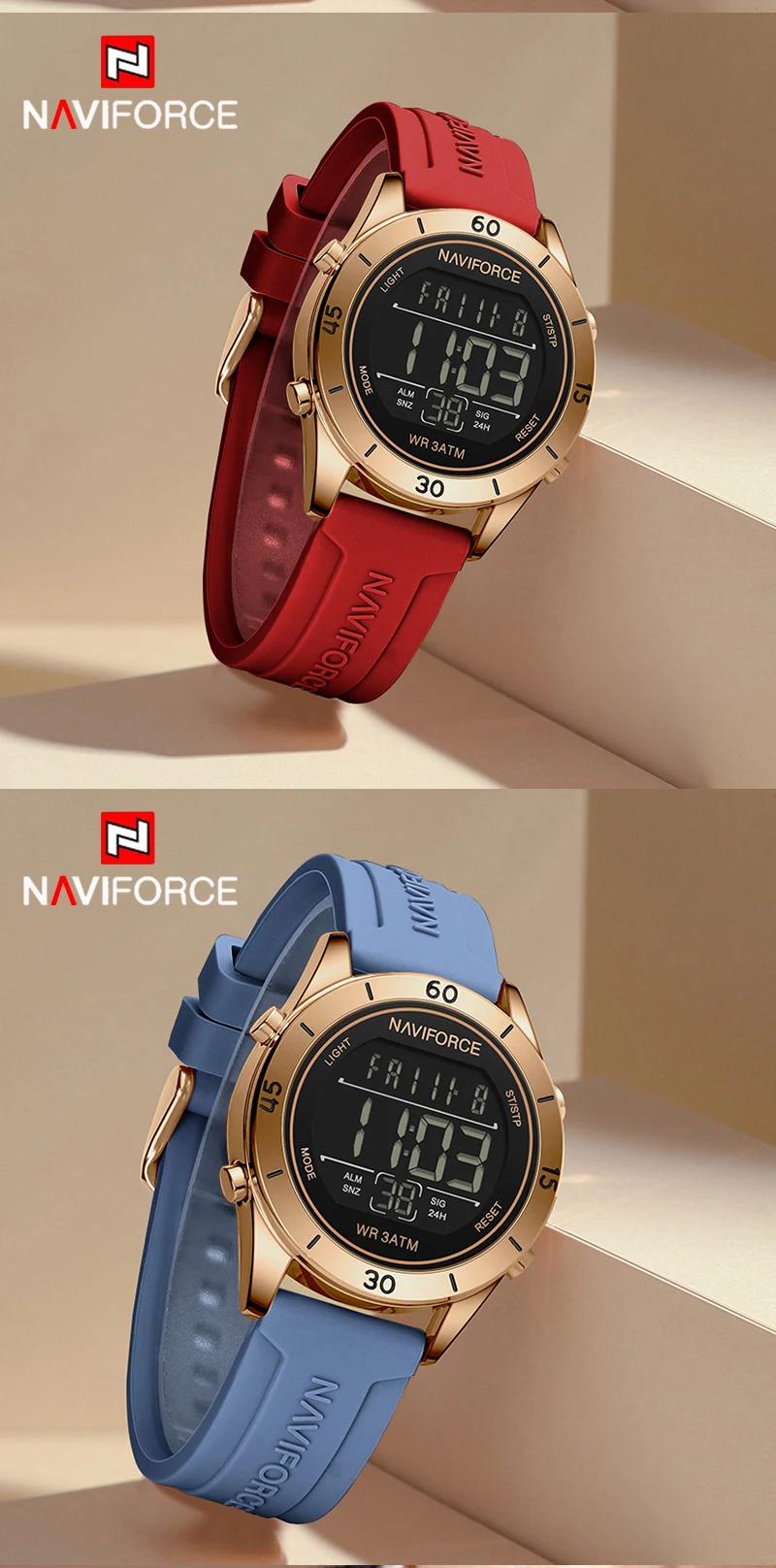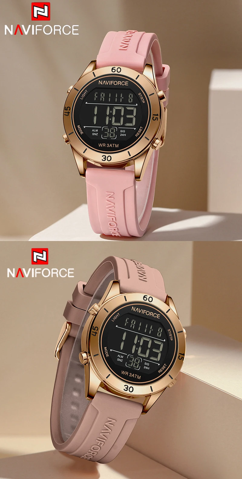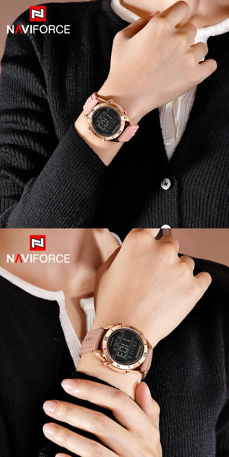 NAVIFORCE Fashion Women Electronic Watch Digital Display Multifunction Waterproof Watch Casual Sports Women's Watch Reloj Mujer