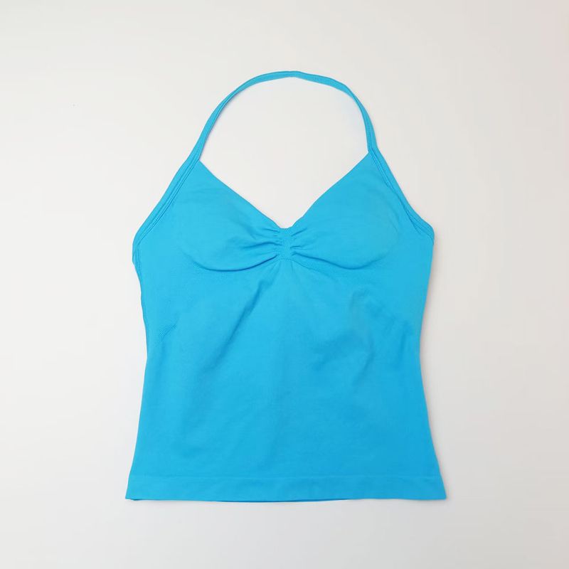 NCLAGEN Gym Longline Strappy Top Women Seamless Yoga Tank With Removable Pads V Neck Workout Clothes Sports Running Fitness Vest