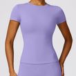 NCLAGEN Women Running Sports T Shirt Summer Short Sleeve Round Neck Breathable Stretchy GYM Yoga Slim Fitness Active Top Tee